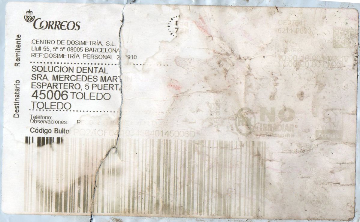 Muestro la etiqueta y la parte del sobre con el franqueo.