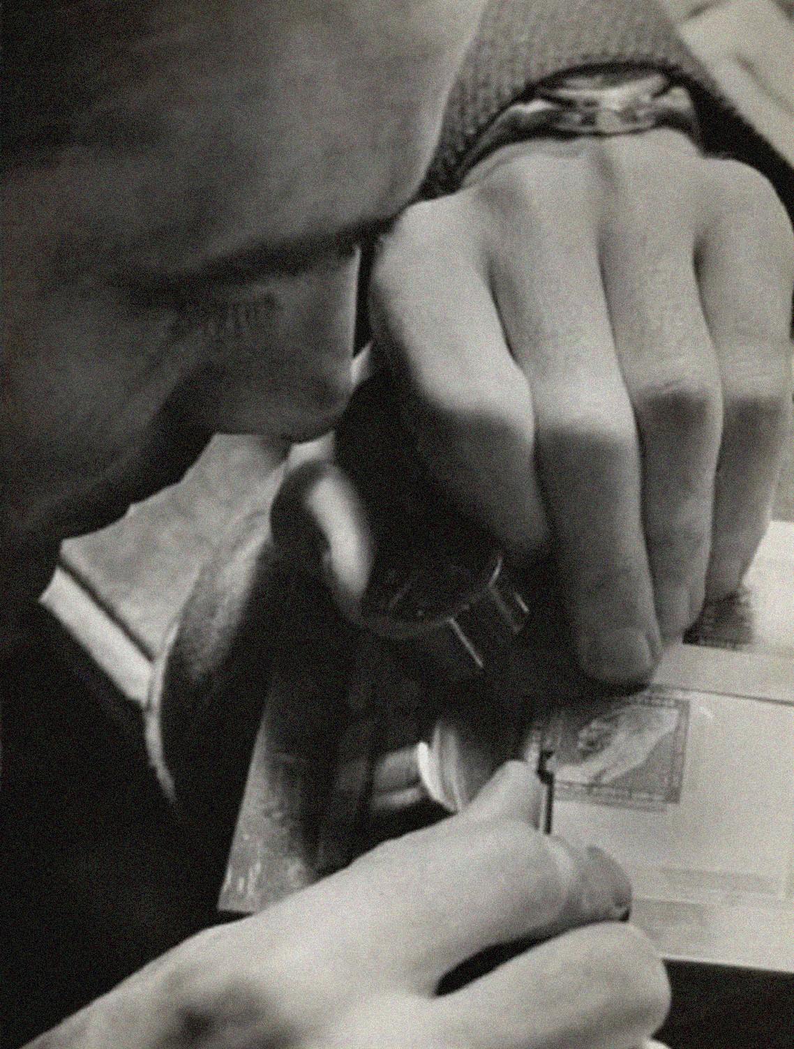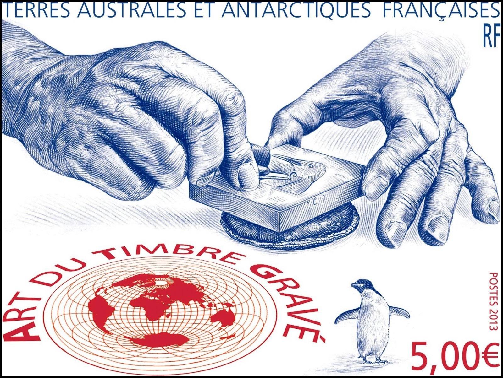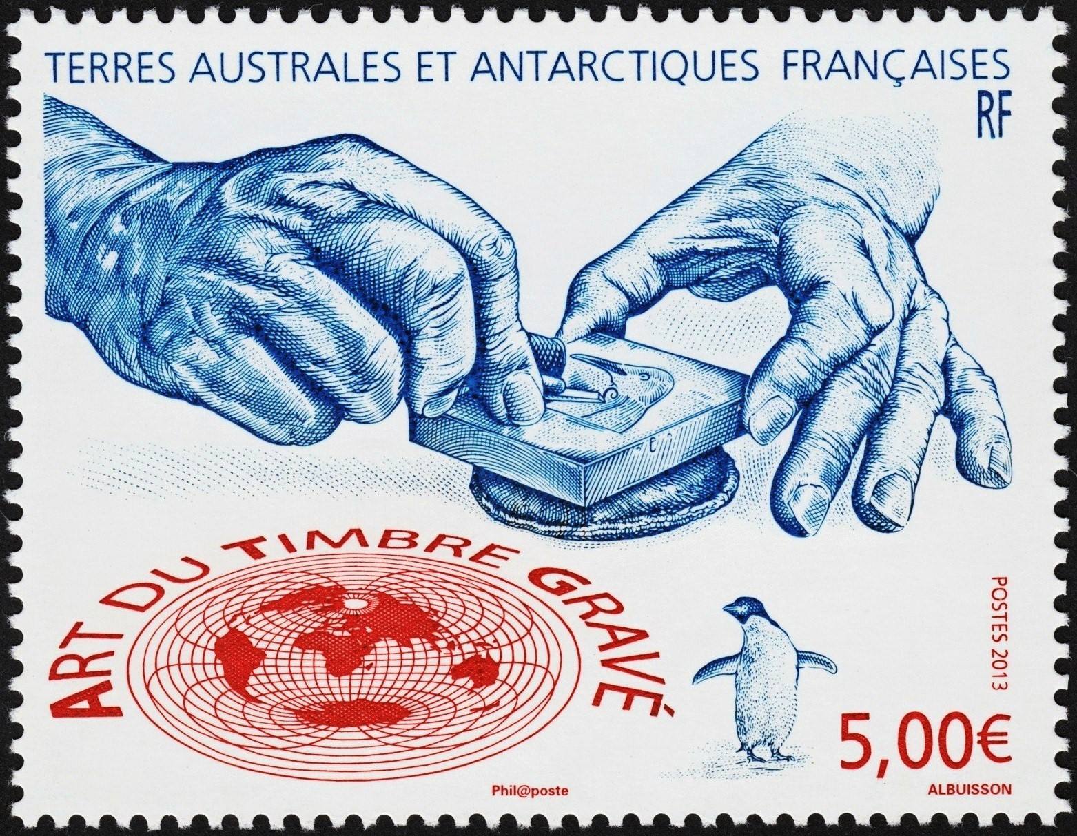 La razón es que tenemos una buena imagen del diseño original del propio Pierre Albuisson para uno de sus mejores sellos, el de las manos grabando de 2013.