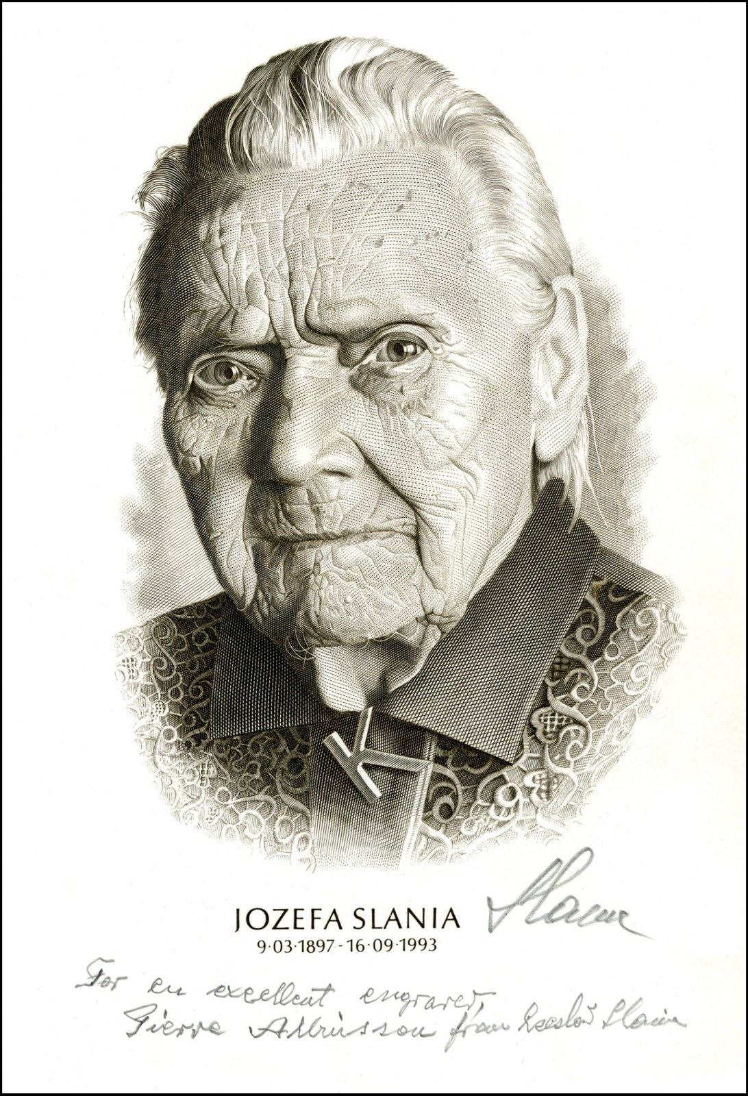 En una breve entrevista concedida a Izabella Wlazłowska a finales de 2001, Czeslaw Slania contó que «grabando hace poco unos sellos para las Islas Marshall, enfermé y fui ingresado en el hospital. Entonces me llevaron los materiales básicos a la habitación y allí mismo monté un pequeño taller. Los médicos estaban estupefactos».
