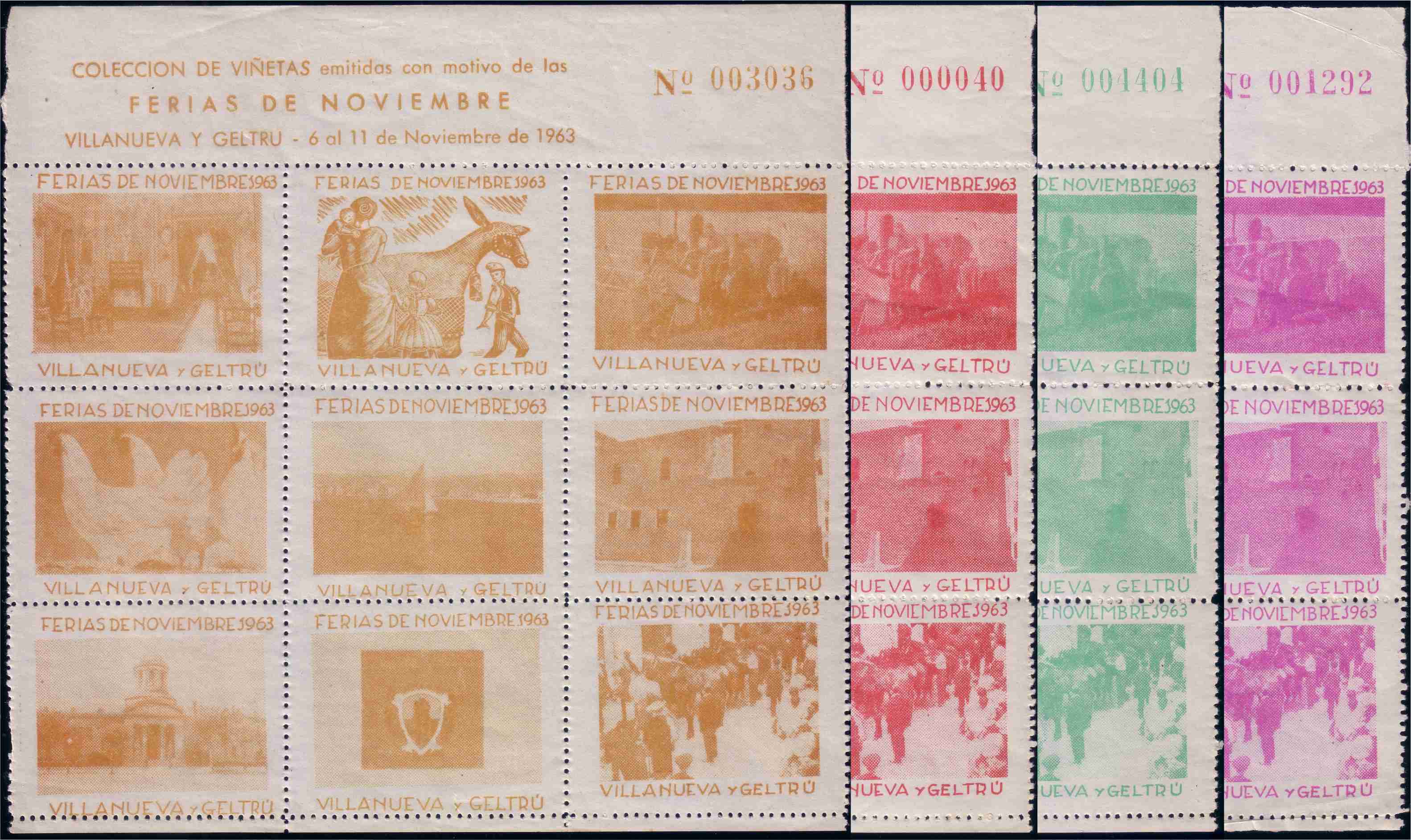 Para 1963 se hicieron unas hojitas de veinte viñetas, en colores azul, rosa y lila,,, muestro la azul y unas viñetas sueltas en cada color.