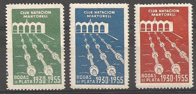 Creo no haber visto estas otras de MARTORELL (Barcelona), Bodas de plata, natación 1955.......... en principio tenia esta imagen de tres viñetas diferentes....... pero hace poco capté otra en las que los colores aumentan a CINCO diferentes. La clasificación de colores los dejo a determinar.