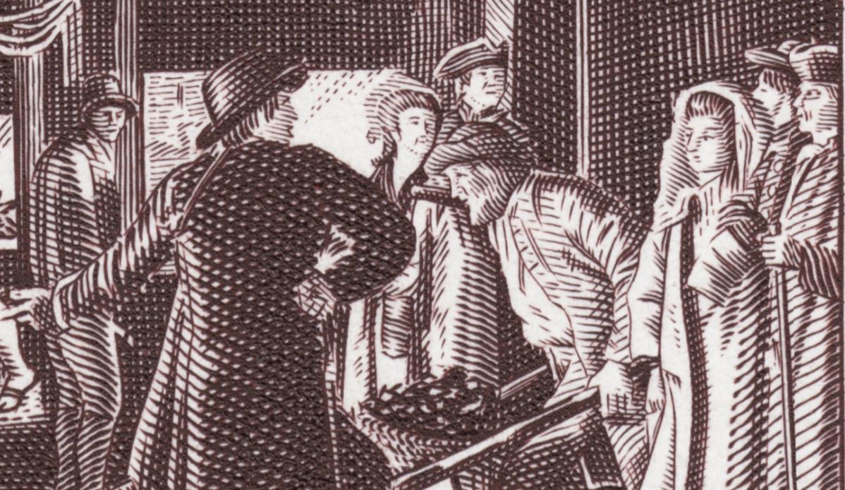 Y con este sello de ahora volvemos a afirmar a Slania en el espacio en el que siempre está: el de los más grandes. Grabado de Slania a principios de los setenta, a partir de este óleo del artista sueco Pehr Hilleström: