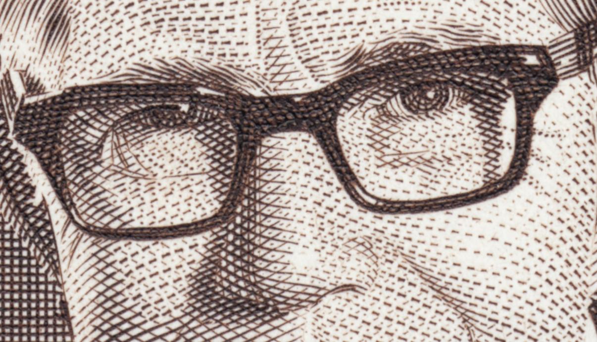 En páginas anteriores hemos mostrado cómo Nefe y Toth creaban la sombra de las patillas de las gafas. ¿No tenemos derecho a ver cómo lo hizo Slania? Retrato del escritor de las Islas Feroe Brú Heðin. A quien no conocemos de nada, no habíamos oído nunca su nombre y aún menos leído nada suyo. Pero es que de momento sólo nos interesan sus gafas, y si acaso esa verruguita de la frente, ya veremos más adelante...