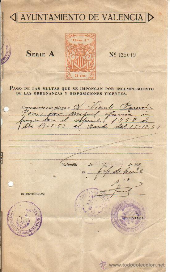 Tambien como perteneciente a VALENCIA capital , en el apartado MULTAS, perteneciente al año 1952