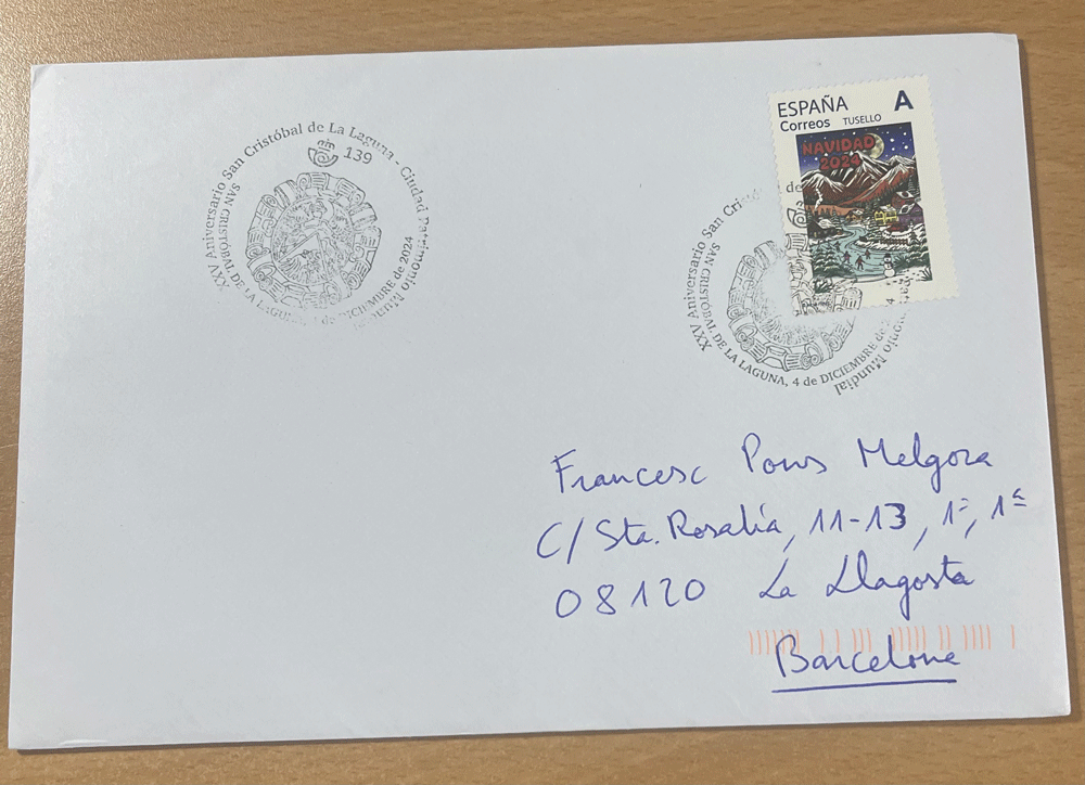 Recibido el sobre y sello de Navidad de Carlos.
