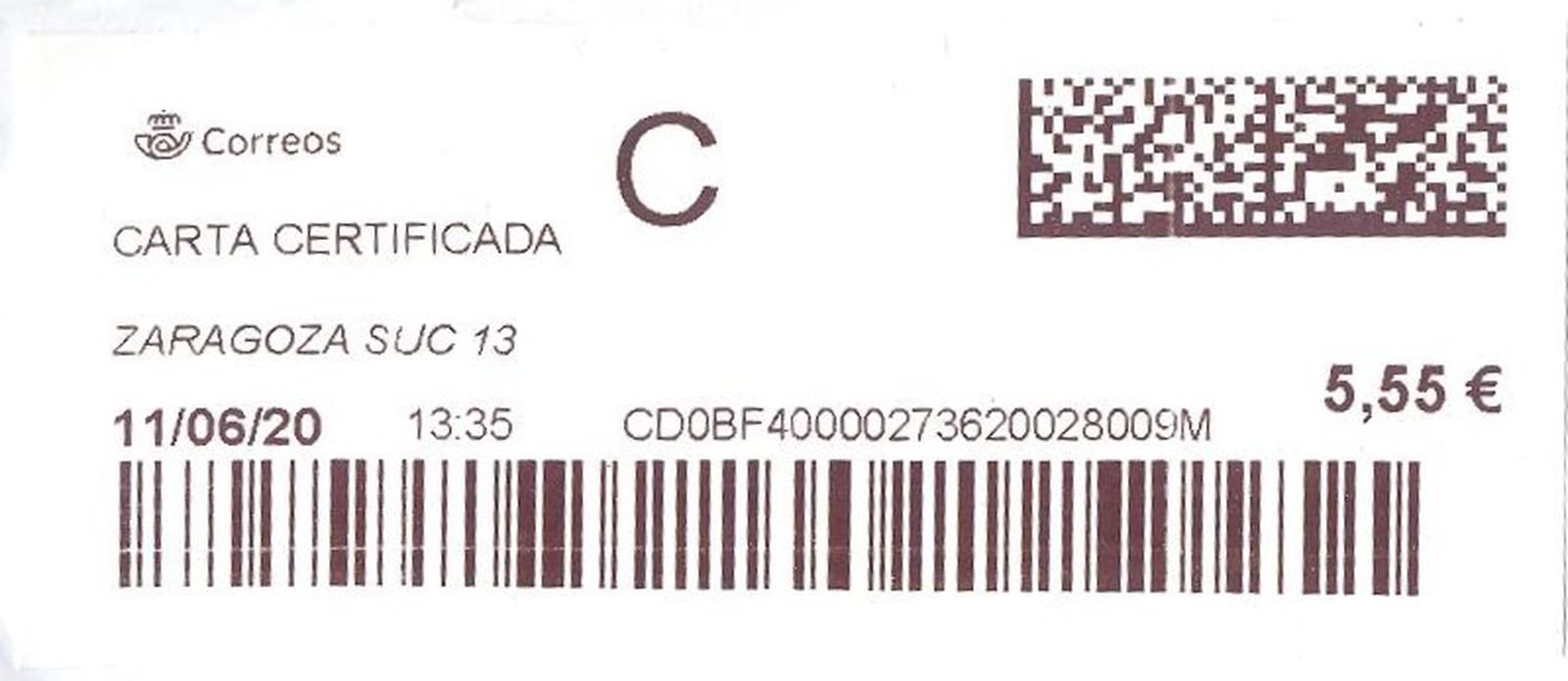 Etiqueta térmica digital. Nuevo Correos. Zaragoza Suc 13. Carta certificada. 2020-06-11. 13.35. 4,2x10. 5,55 euros. Baja.jpg