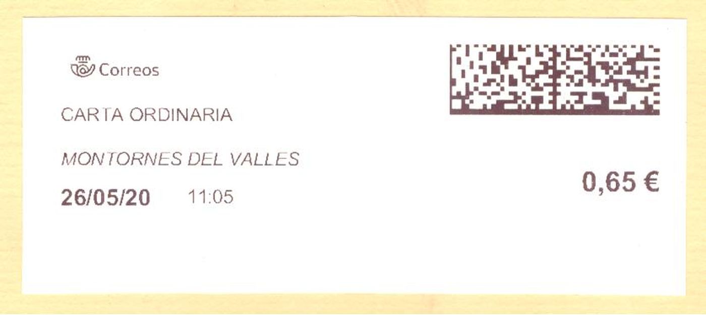 Etiqueta térmica digital. Nuevo Correos. Montornes del Valles. Carta ordinaria. 2020-05-26. 11.05. 4,2x10. 0,65 euros. Baja.jpg