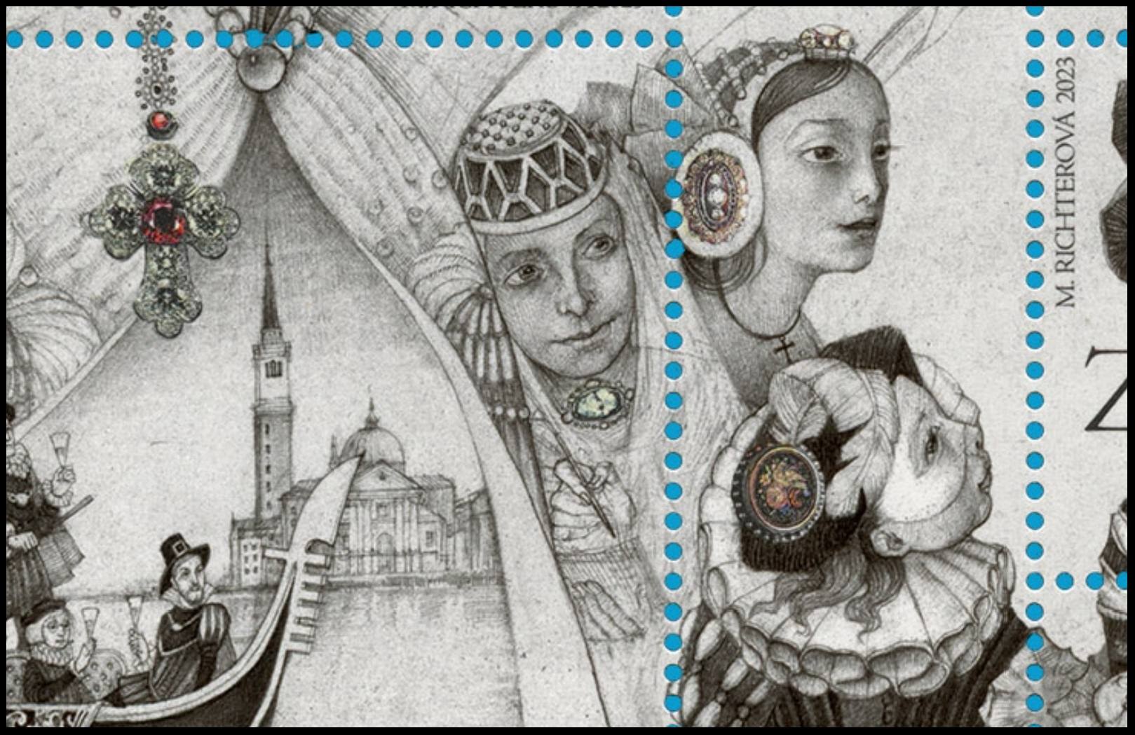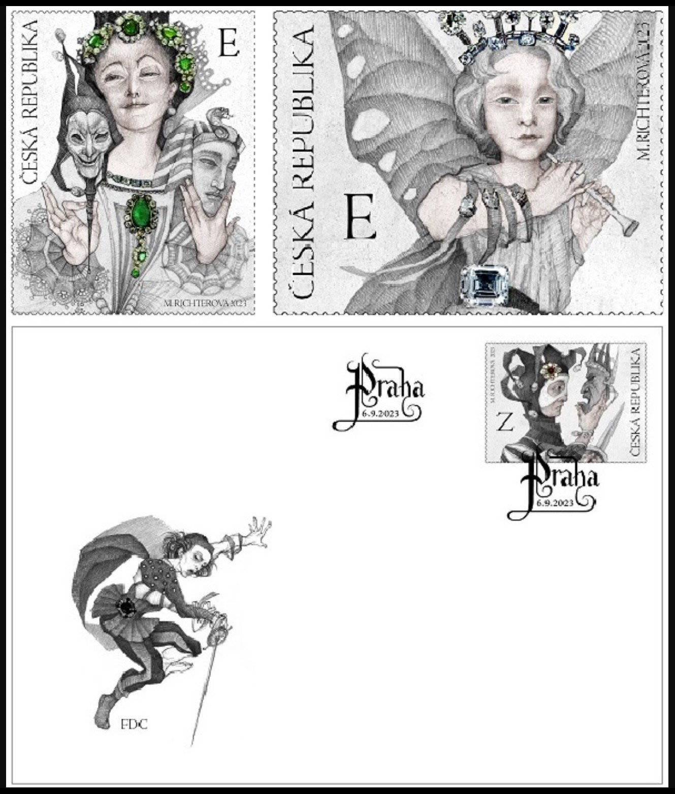 Aun sin tener todavía la hojita en mi poder, las buenas imágenes promocionales del Correo checo permiten atisbar alguna que otra peculiaridad del diseño genial de Marina Richterová.