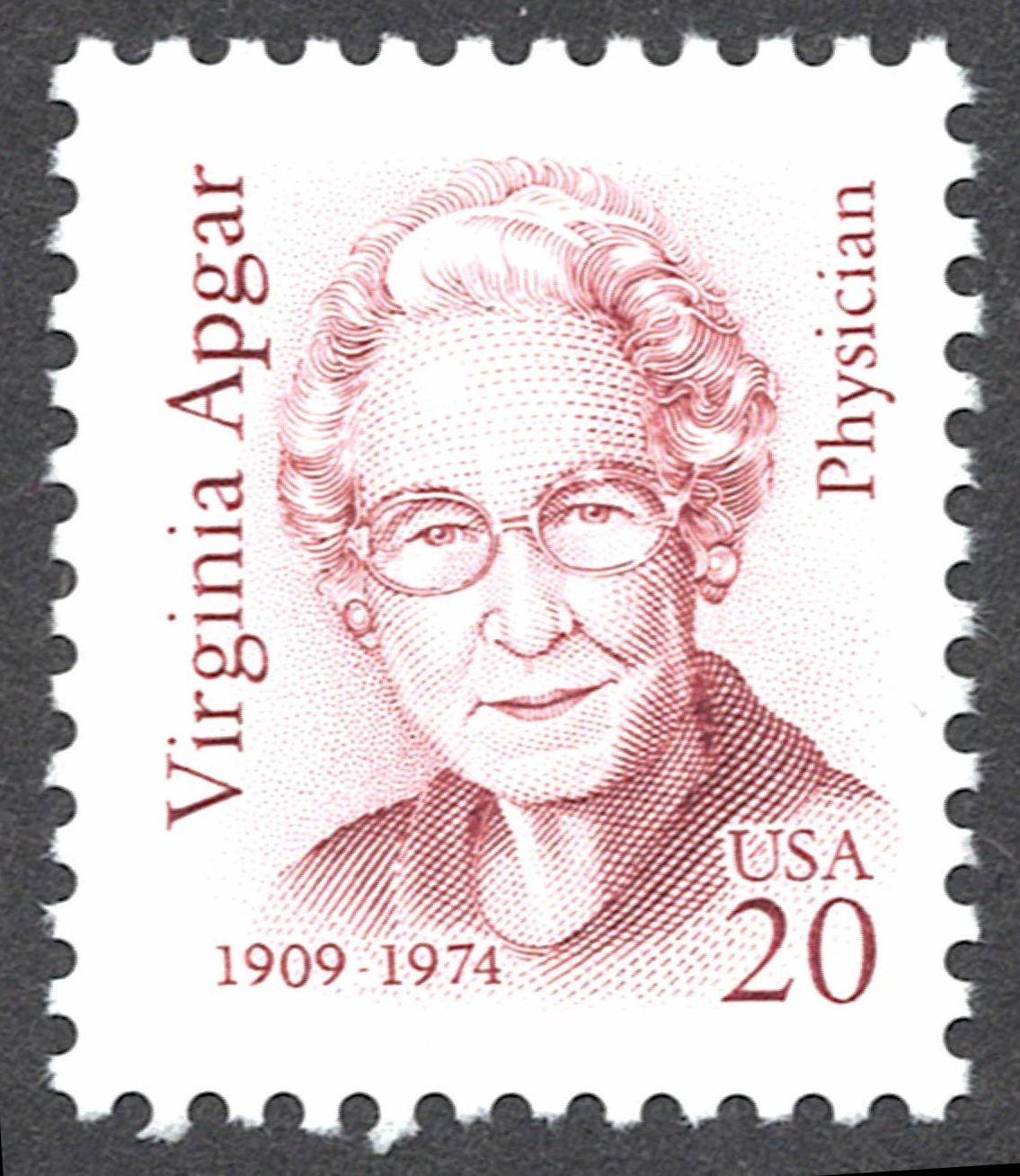 Y, aún con los tórridos calores, quiero traer un sello que ha llegado recientemente a mi colección; Estados Unidos, 1994, sello dedicado a Virginia Apgar.