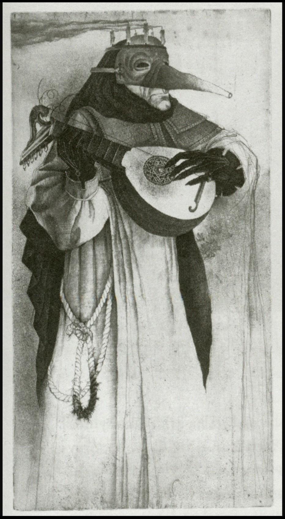 Como dijimos hace unas entradas, Marina Richterová lleva más de treinta años leyendo e interpretando a Shakespeare. La figura más imponente de la hojita está inspirada en una vieja creación de la artista para El rey Lear. Aquí debajo pongo una imagen en blanco y negro de una litografía suya de finales de los años ochenta.