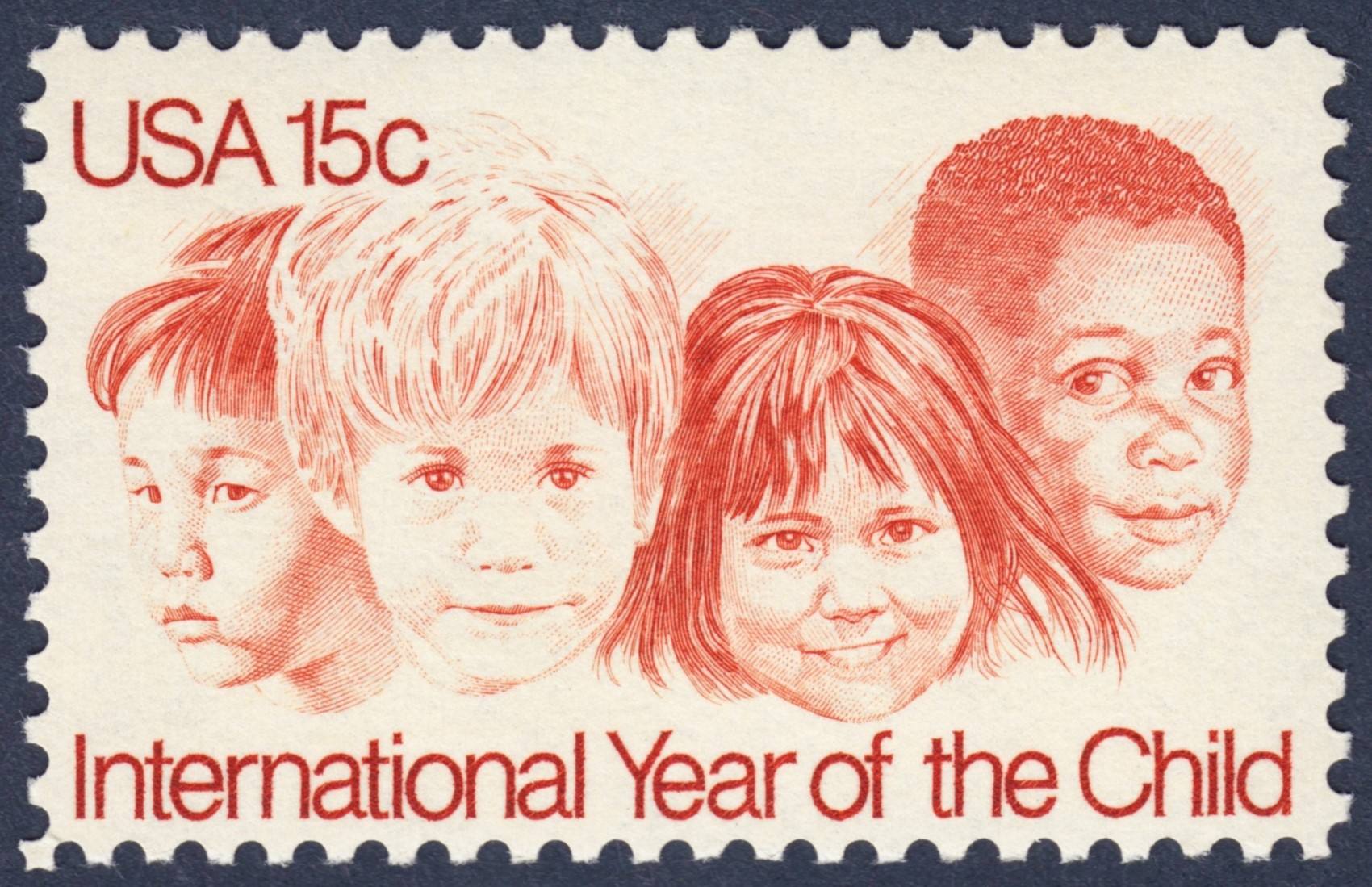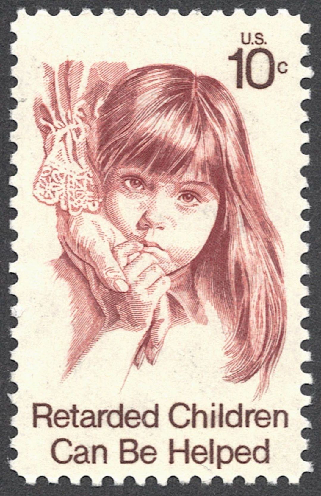 Se trata de un sello de 1974, referido a la ayuda que se puede prestar a los niños con Síndrome de Dawn.