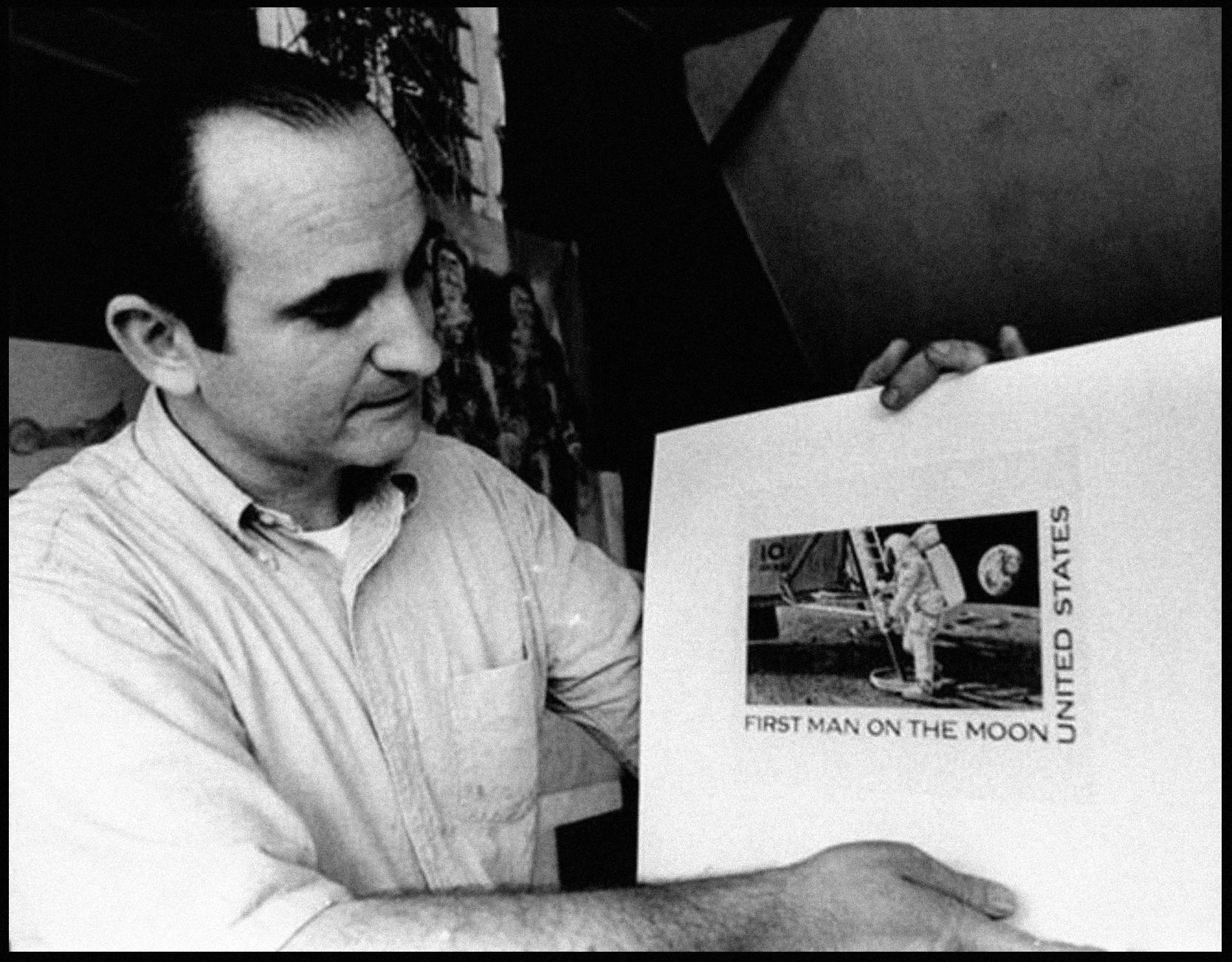 El sello norteamericano expuesto por Tomeu fue diseñado por Paul Calle (1928-2010), autor del famoso sello del primer hombre en la luna de 1969, cuya viñeta grabó Edward R. Felver. Su hijo, Chris Calle, también ha diseñado varios sellos norteamericanos.