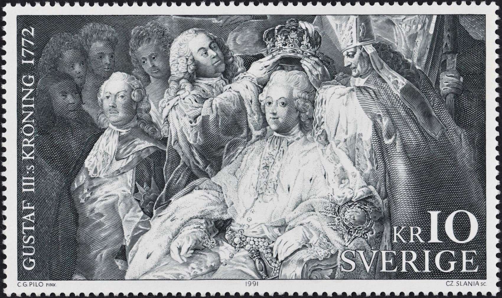Están muy intencionadamente relacionados uno y otro sello. Así, y aparte del mismo método de impresión (calcografía y offset) y del diseño similar de la hojita que los contiene, se ha procurado que el grabado de Mörck sea un poco más grande que el de Slania (82 x 62 mm en zona impresa; 75 x 55 mm el del maestro polaco), por esta idea, equivocada en realidad, de que fuera el nuevo sello grabado más grande del mundo. Sin duda lo es, pero dentado; recordemos el sin dentar de Polonia (1960), obra de Stefan Łukaszewski (93 x 73 mm en zona impresa; impresión sólo calcográfica).