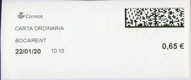- Etiqueta térmica digital. Nuevo Correos. Coria del Rio. Carta ordinaria. 2020-10-20. 11.47. 4,1x10. 0,65 euros.jpg (19.94 KiB) Visto 1879 veces