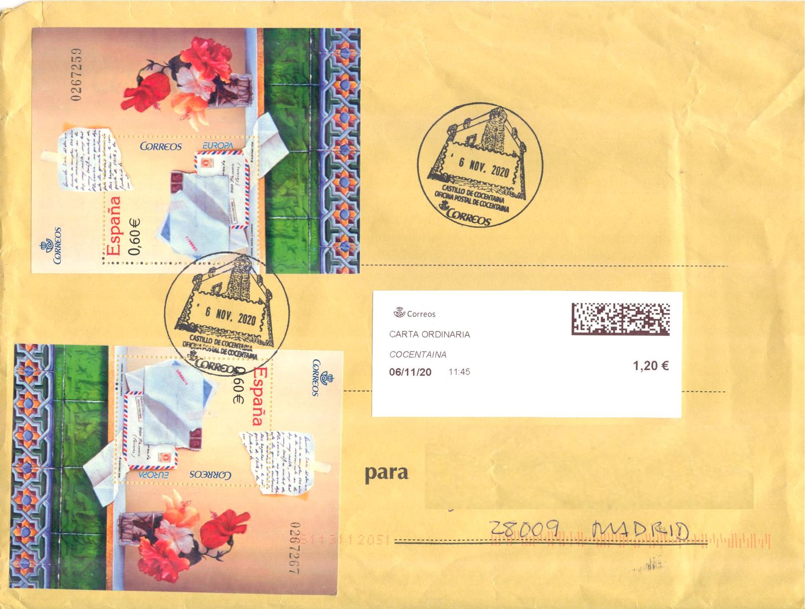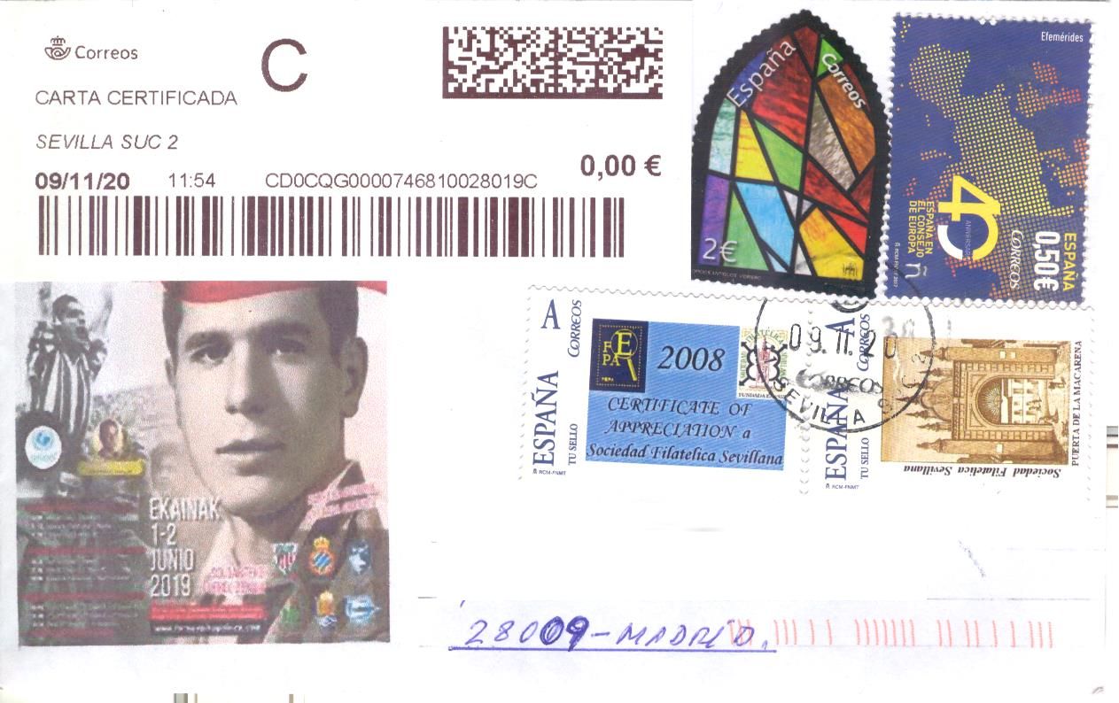 Con el sobre para que se vea el complemento de franqueo y lo bien que tratamos a nuestros envíos los amigos filatélicos.