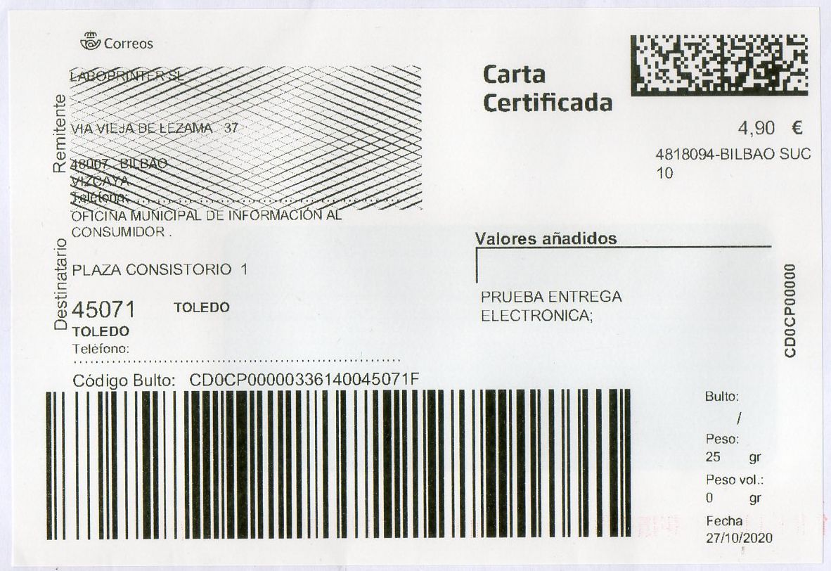 4818094-BILBAO SUC 10 / CARTA CERTIFICADA / 27-10-20