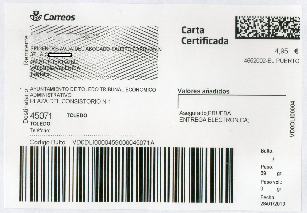 4652002-EL PUERTO / CARTA CERTIFICADA / 28-01-19