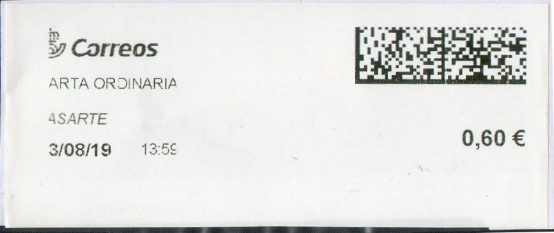 - Etiqueta térmica digital. Nuevo Correos. Barcelona Suc 1. Carta ordinaria. 2020-11-19. 16.57. 4x10. 0,65 euros.jpg (20.8 KiB) Visto 1685 veces