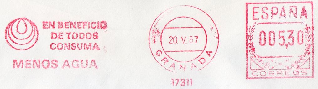 FRAMA Nº 17.311 / GRANADA / MENOS AGUA. Ya en los ochenta empresas como EMAGRASA, hoy todavía activa, publicitaban un menor consumo de Agua...