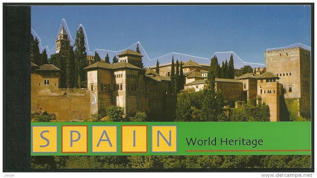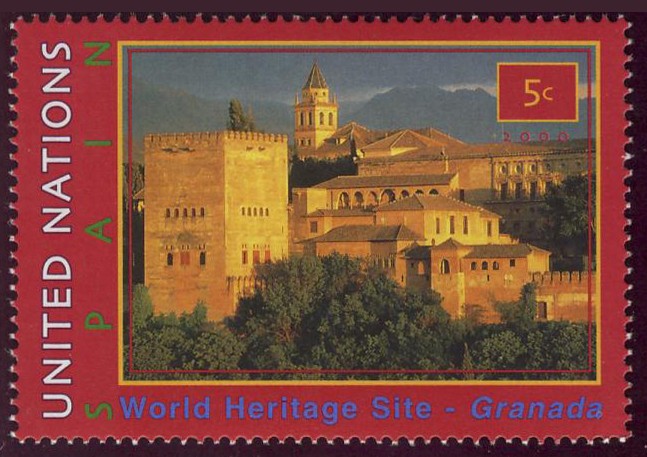 Estas dos imagenes corresponden a un carnet libro emitido por Naciones Unidas, en el de España, además de aparecer la Alhambra en la portada, le dedica una hoja de 4 sellos a los siguientes monumentos: