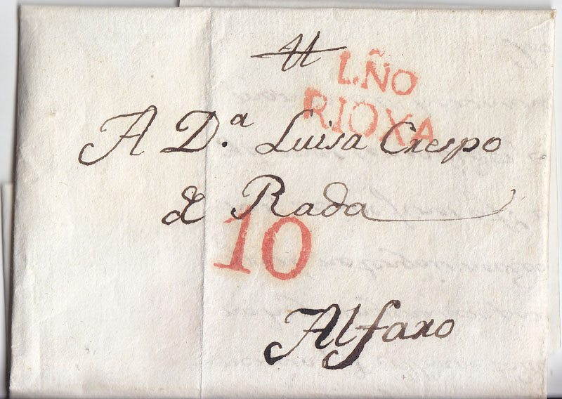 Esta aportación seguramente será una tontería, ya que es evidente que la marca PE 7 de Logroño aunque Tizón la recoge hasta 1840 tuvo que usarse hasta 1842 que entro en vigor del "Baeza". Pero como es bonita la carta, pues la subo.