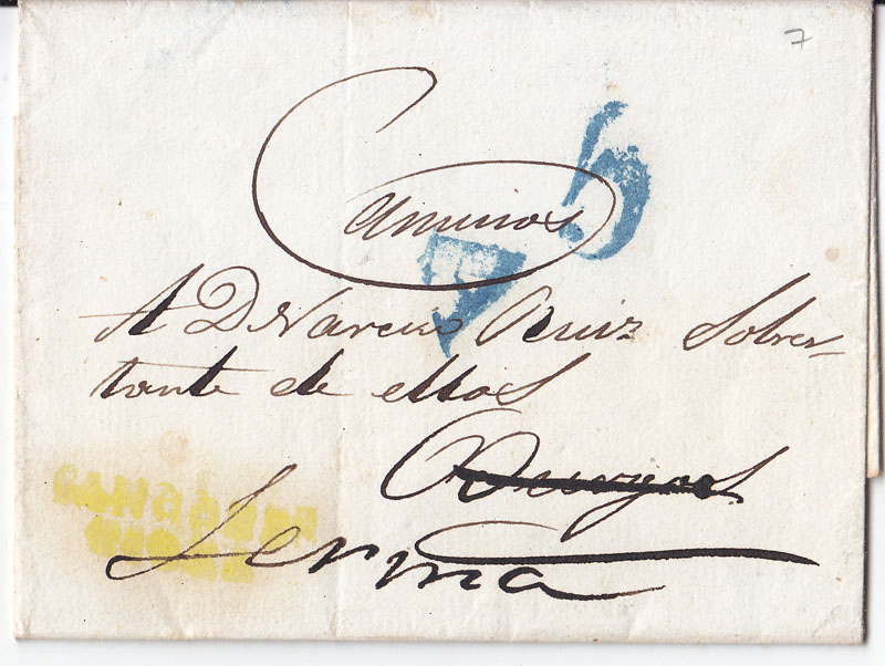 Por lo que veo la marca de Pancorbo en amarillo Tizón la da entre 1844 y 1846 así que la carta será más o menos de esa fecha.