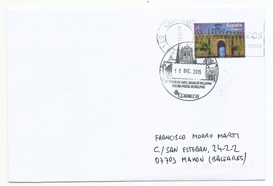 Subo impronta del matasellos de Vilafranca del Penedés por aquello de que es posible sea primera fecha de uso 18/12/2015. La vi en una página de redes sociales y por el momento no se nada más.