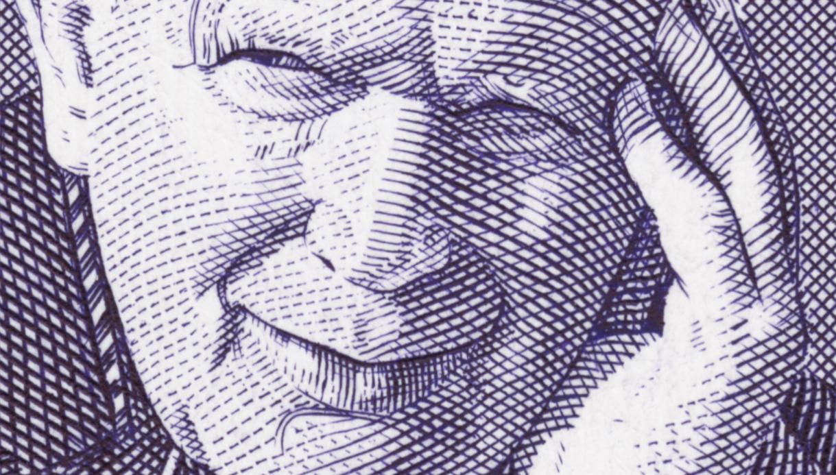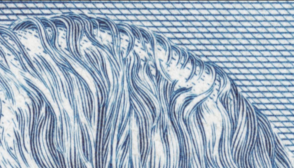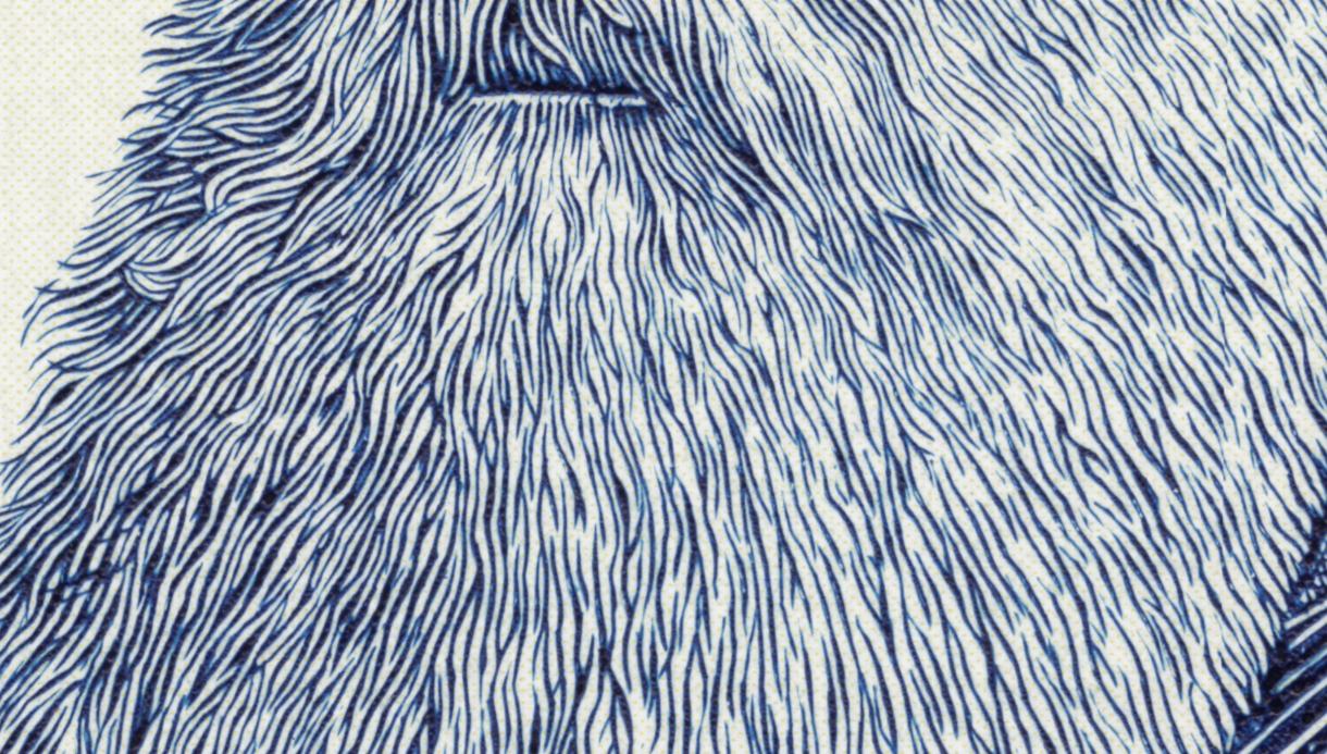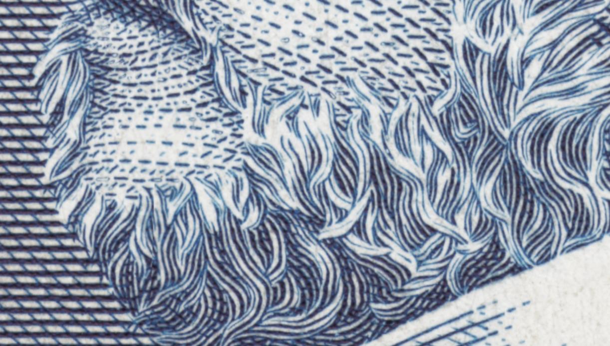 Hemos de recrearnos un poco más con este sello supremo. Acabamos de ver las iniciales de la grabadora deslizadas entre el cabello plateado de este buen hombre. También nos pudiera parecer que la barba hubiera crecido después de acabado el grabado, tan delicado es su trazo que nos da la impresión de estar superpuesta... ¿Y qué decir de la textura de la chaqueta? Casi podemos tocarla, sentimos su dureza ajada en nuestros dedos...