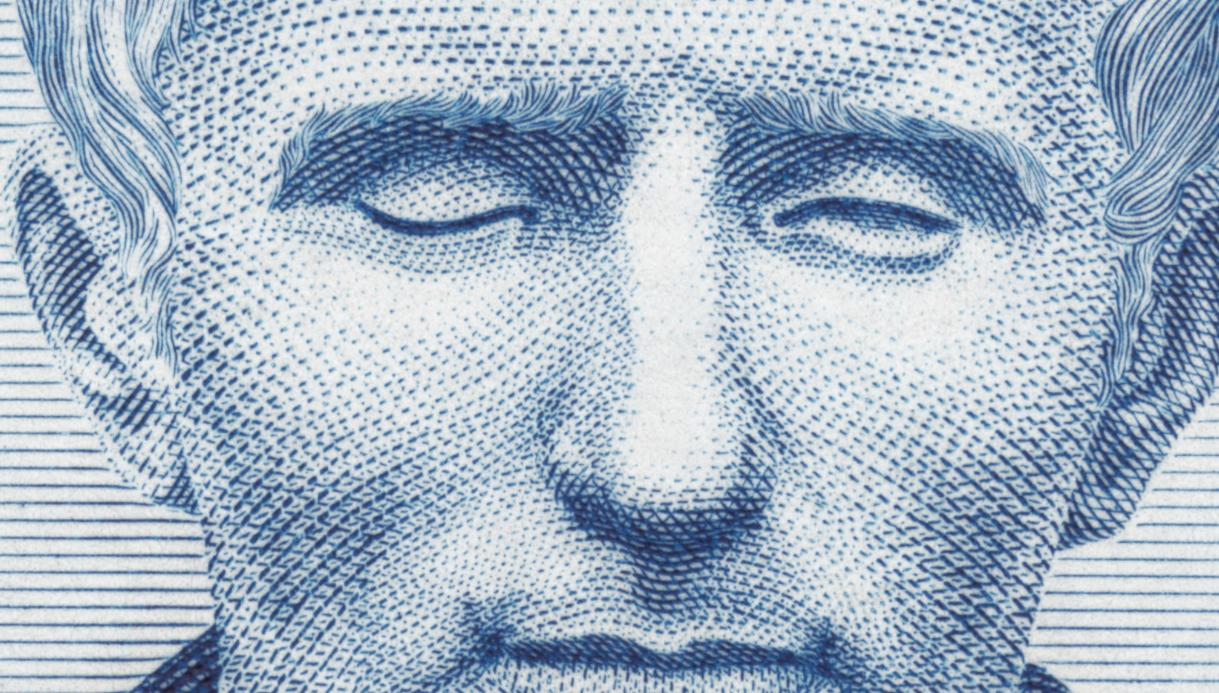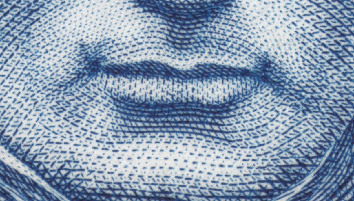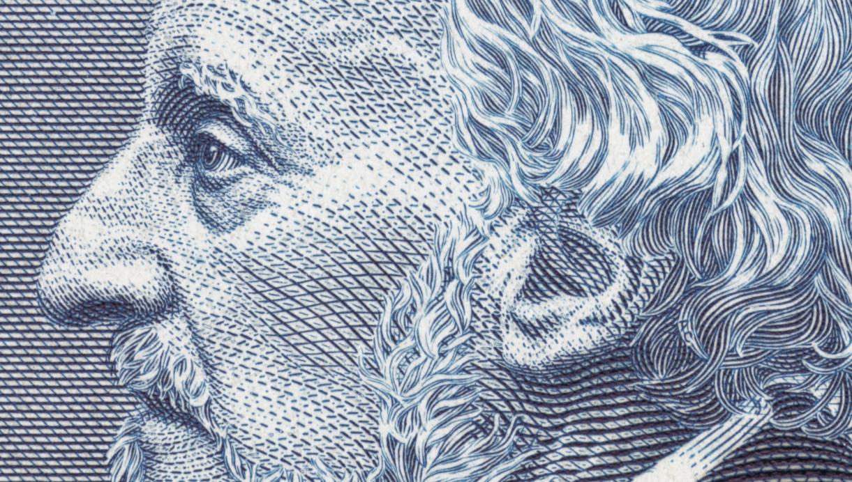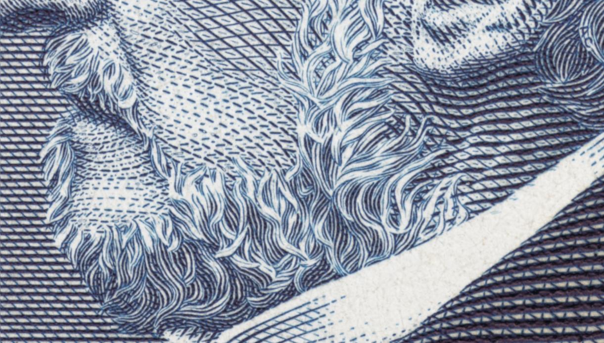 Hemos de recrearnos un poco más con este sello supremo. Acabamos de ver las iniciales de la grabadora deslizadas entre el cabello plateado de este buen hombre. También nos pudiera parecer que la barba hubiera crecido después de acabado el grabado, tan delicado es su trazo que nos da la impresión de estar superpuesta... ¿Y qué decir de la textura de la chaqueta? Casi podemos tocarla, sentimos su dureza ajada en nuestros dedos...