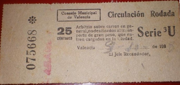 Aunque nada tiene que ver con esta serie tan amplia, dejo este IMPUESTO de circulacion rodada de carros de 1938 de VALENCIA