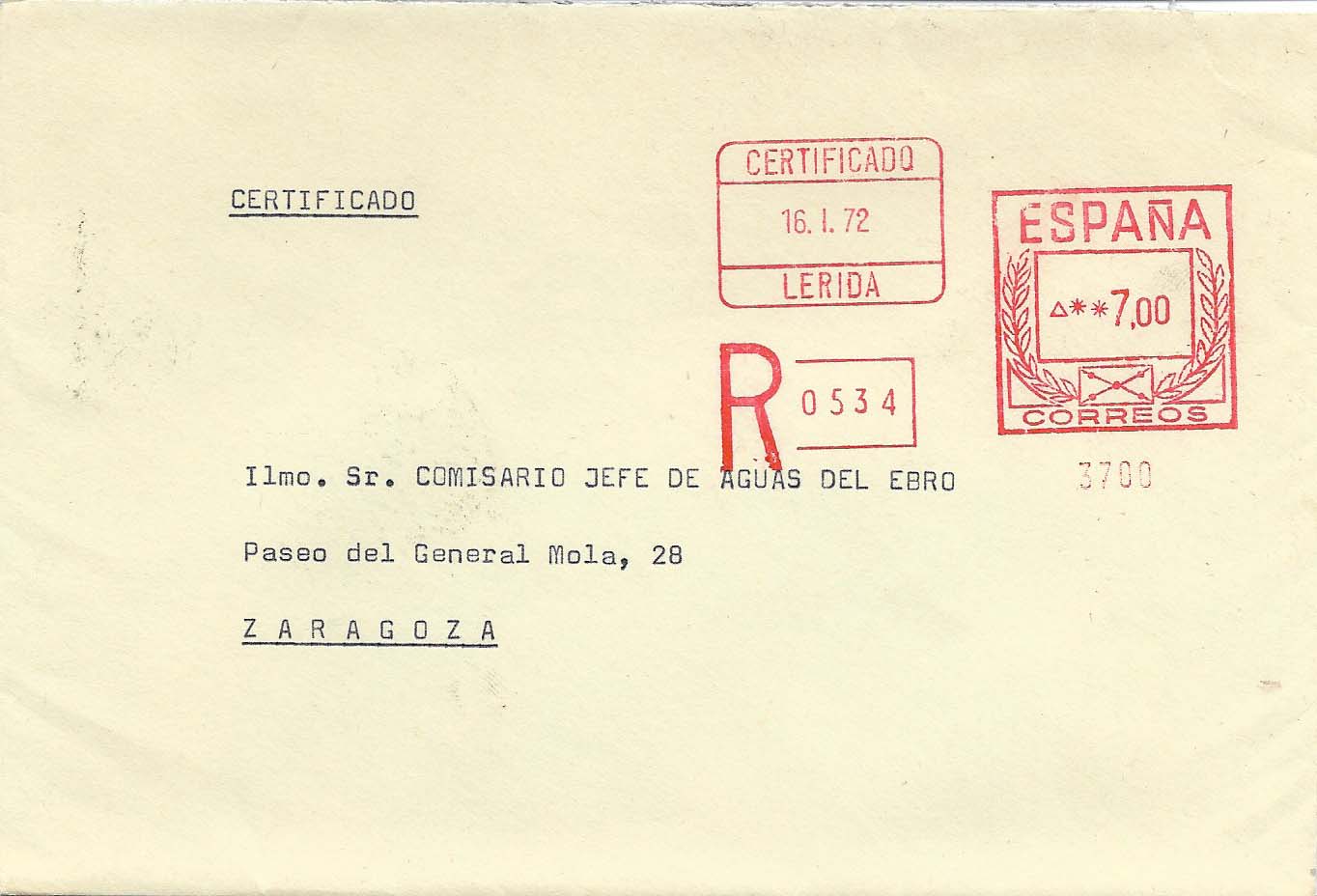 Lo remito como curiosidad. Imagino que los especialistas ya lo habíais visto en otras ocasiones pero, en mi caso, es la primera vez que veo un franqueo mecánico que incluye el matasellos y la etiqueta de certificado. El número de máquina corresponde a la Administración Principal de Correos de Lérida.