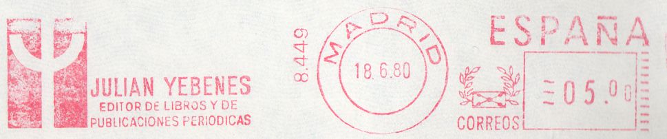 PITNEY Nº 8.449 / MADRID / JULIAN YEBENES. EDITOR DE LIBROS Y DE PUBLICACIONES PERIODICAS