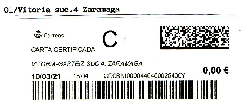 Etiqueta de franqueo complementario de sello de 0,70 € a tarifa actual.
