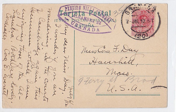 Hola Alfareva: Sirvan estas imágenes para comprobar la cancelación que llevan las cartas depositadas en el buzón boca de león de la calle Real de la Alhambra. Fué la tarjeta que le envié a María.