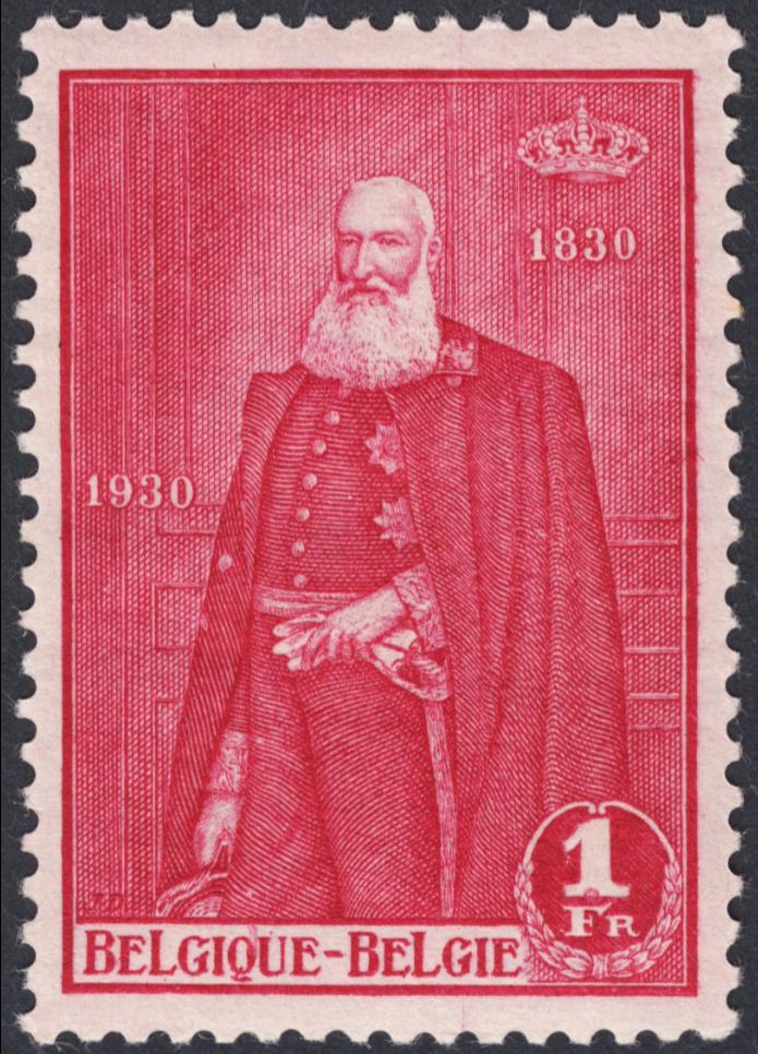 El Leopoldo II más conocido de Jean De Bast. Uno de los tres valores de la serie de 1930 dedicada a los tres reyes belgas que hasta entonces habían reinado o reinaban. Excelentes grabados, todos de De Bast, para crear una de las series míticas del primer centenario de la gran filatelia belga.