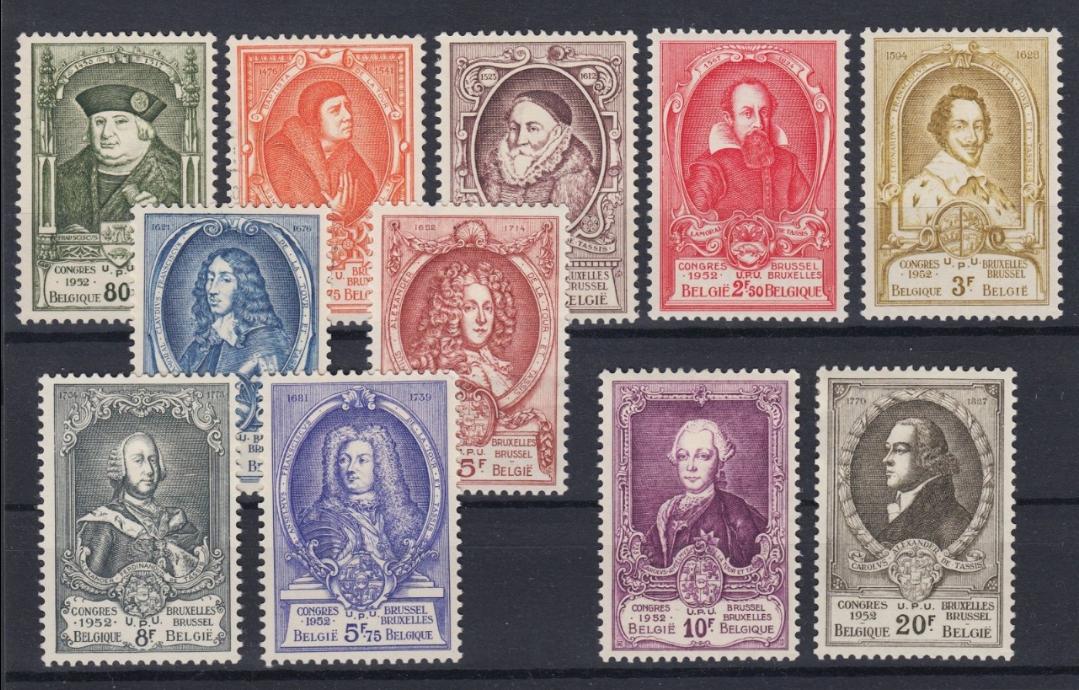Pertenece este de ahora a otra de las grandes series de la filatelia belga, emitida en 1952. Una serie dedicada a los miembros más prominentes de esta gran familia del Correo. Todos ellos, por cierto, o al menos la gran mayoría (no los he escaneado aún todos a alta resolución), grabados por De Bast.
