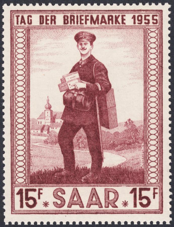 Este otro celebra el Día del Sello en Sarre. Gran sello, con ese cartero entrañable en plena faena... ¡Delicioso!