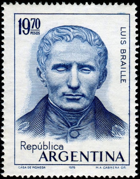 Sello de Braille : iniciales A.C. bajo el hombro izquierdo: