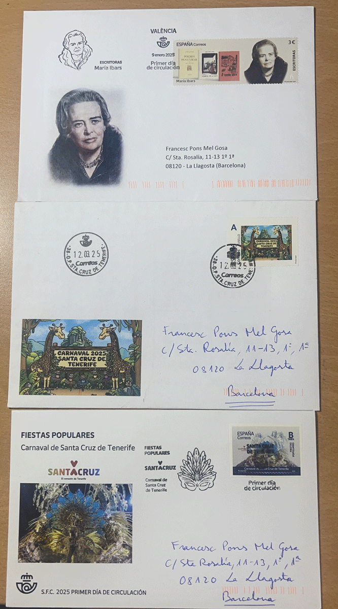 = = =joseluisG escribió: 21 Jun 2025, 10:01Tres semanas ya desde que envié las cartas al Servicio de Matasellado pidiendo el de Primer día para este envío, y de momento "silencio administrativo". Entiendo que no os ha llegado a nadie del CCO, ¿verdad? GraciasjoseluisG escribió: 28 May 2025, 09:40 Hola,