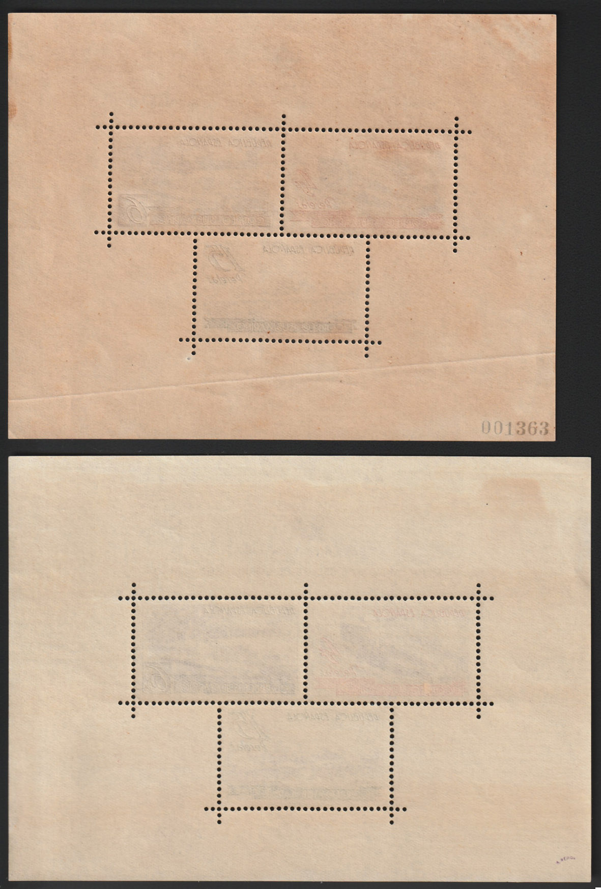 Llevaba charnela? Si no la lleva 400 euros más comisión me parece una ganga...por mucho que se haya depreciado el catalogo, aunque como está el mercado todo es posible...Estos bloques, especulativos, han caido en picado. La hoja bloque parece buena, incluso tiene el punto debajo de "c" de república.