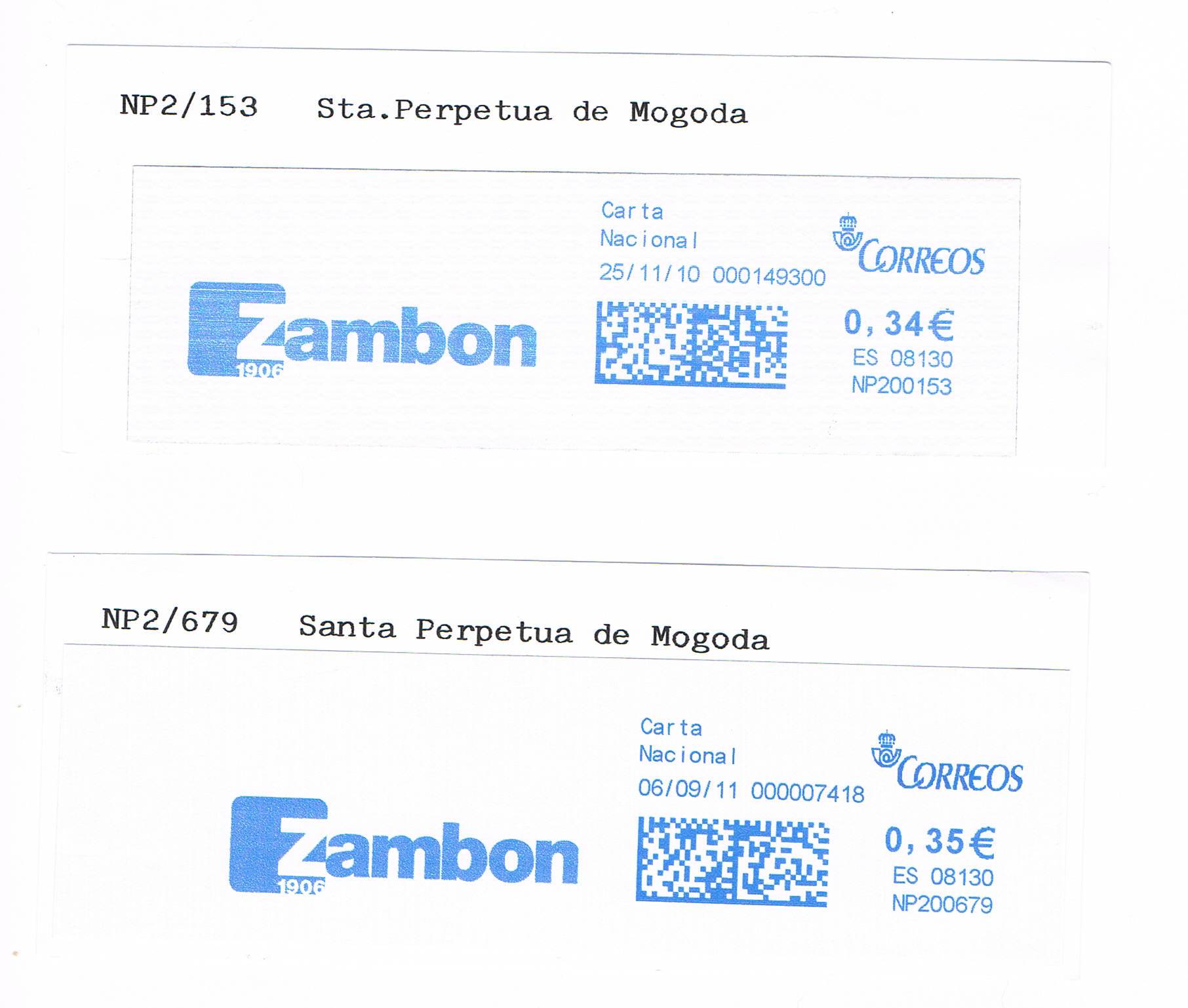 La máquina del Ayuntamiento de Gavá.El primero sin logo y el logo del nº actual es de un cuño de mano