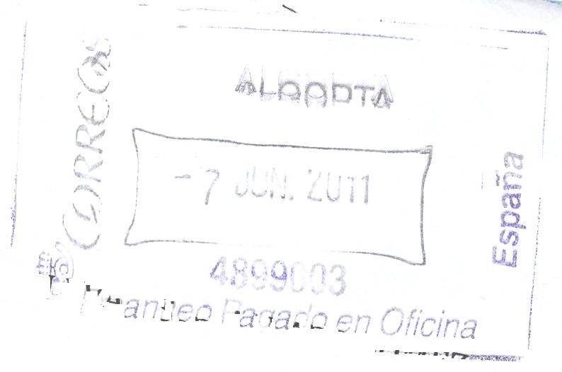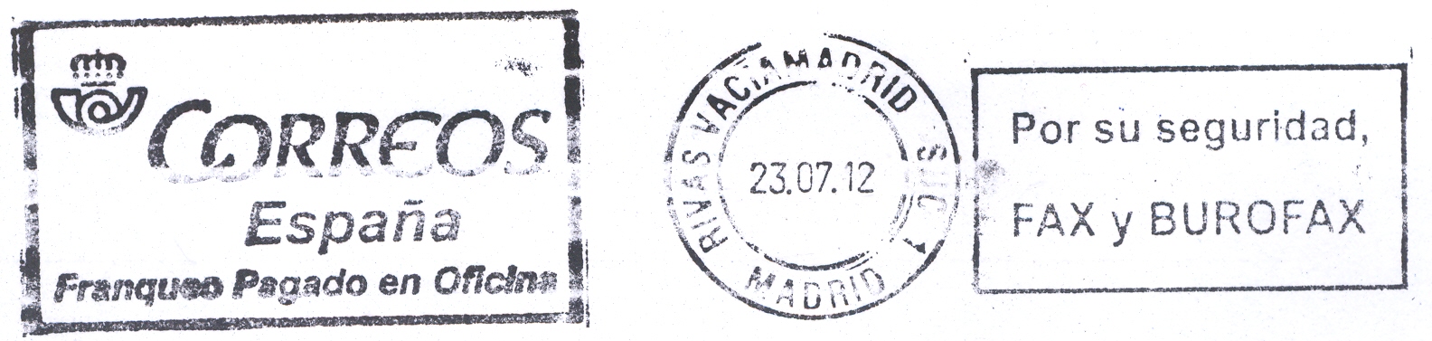 Reproduzco debajo el sobre donde estaba estampada para que se pueda comprobar, por los datos impresos en el impreso pegado del reembolso, la fecha y hora real de utilización.