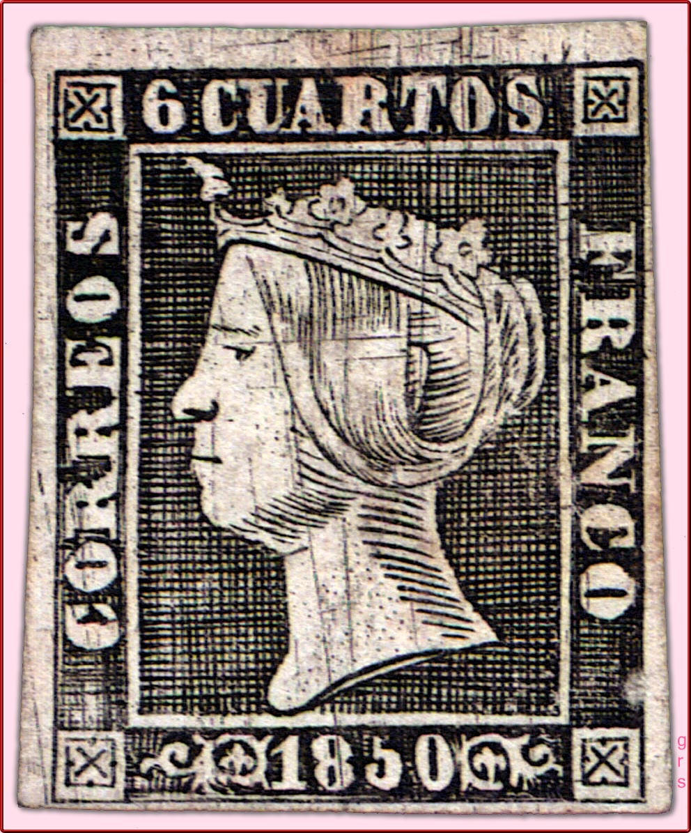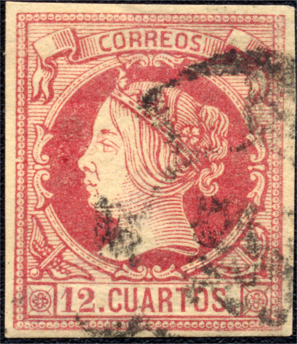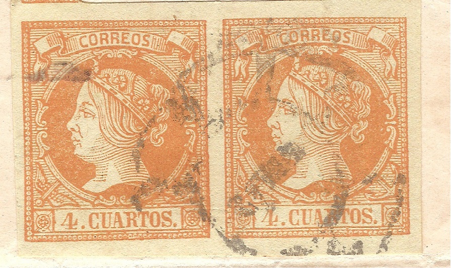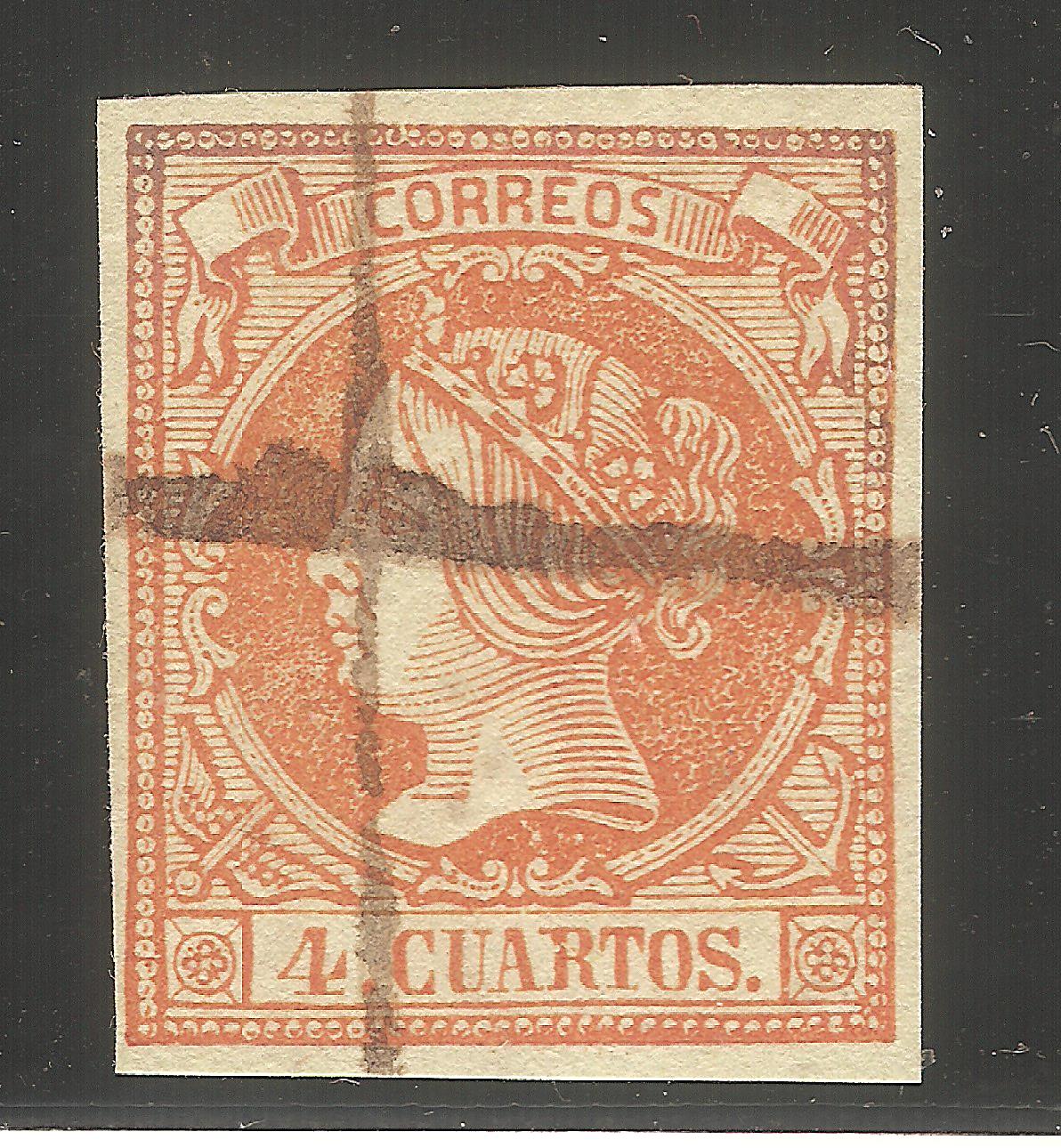 Se trata probablemente de una manipulacion de un seis cuartos a nivel de la parte superior (come se puede apreciar en la imagen) a la que despues se le ha añedido una obliteracion falsa.