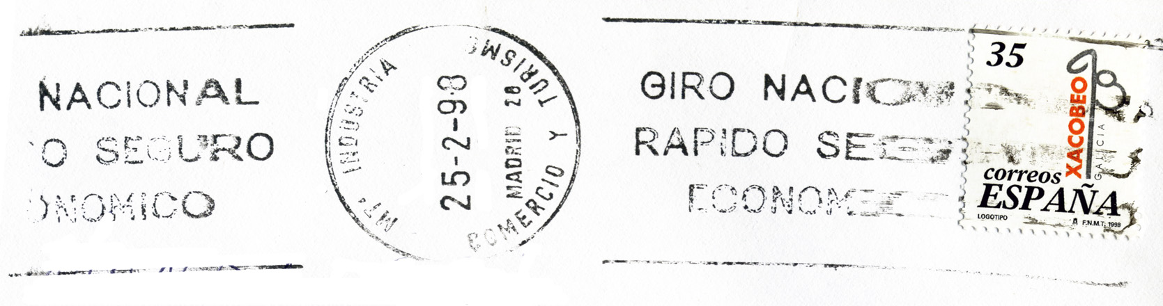 MTo INDUSTRIA COMERCIO Y TURISMO / 25-2-98 / MADRID 28 / GIRO NACIONAL / RAPIDO SEGURO / ECONOMICO