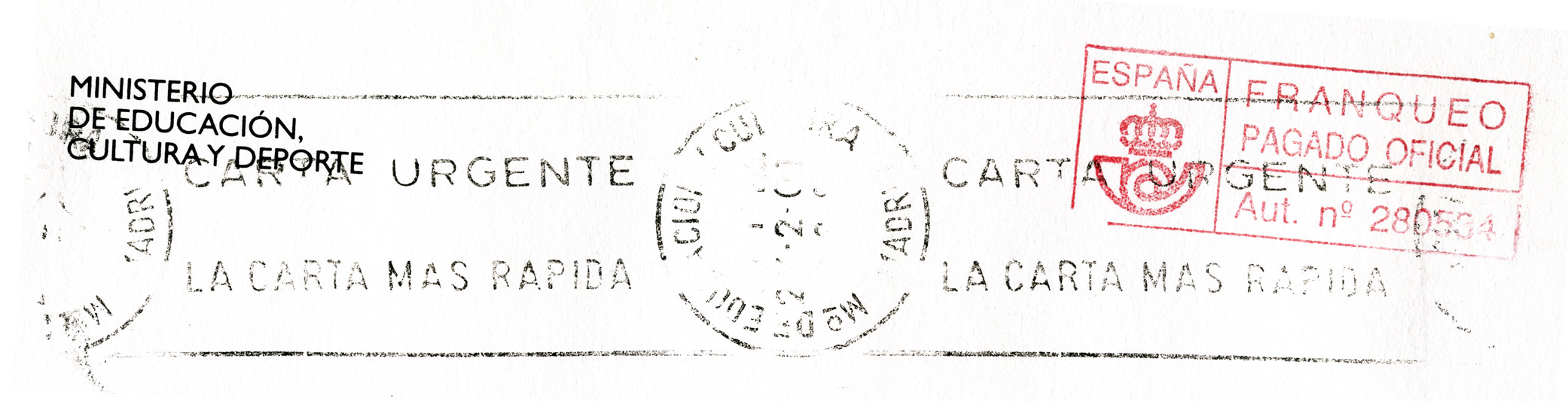 Mo DE EDUCACION Y CULTURA • MADRID / XX. 2. 01 / CARTA URGENTE / LA CARTA MAS RAPIDA