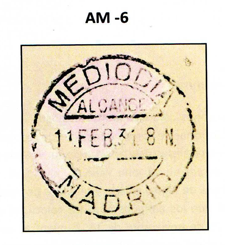 Sitjá cataloga este fechador como AM-6, y dice que tiene 30,6 mm de diámetro. En su libro de Marcas Postales de Madrid de 1870 a 1940, nos dice que ha visto 6 de este tipo con fechas limitadas entre el 9 de Junio de 1926 y el 20 de Agosto de 1931.
