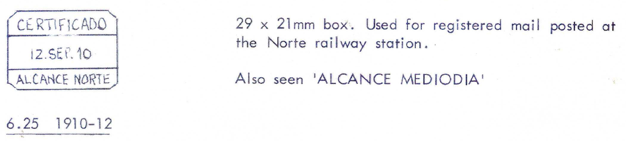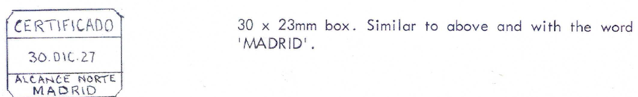 Martínez Pinna cataloga dos con como ALCANCE NORTE MADRID, en dos lineas de 30 x 21 mm y 30 x 24. y un tercero con ALCANCE NORTE con 29 X 20 mm