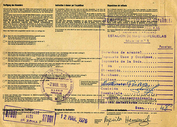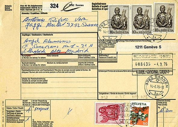 Acompaño el documento completo que se supone que en Suiza se entregó al correo, junto con un paquete que pasó aduana en España.