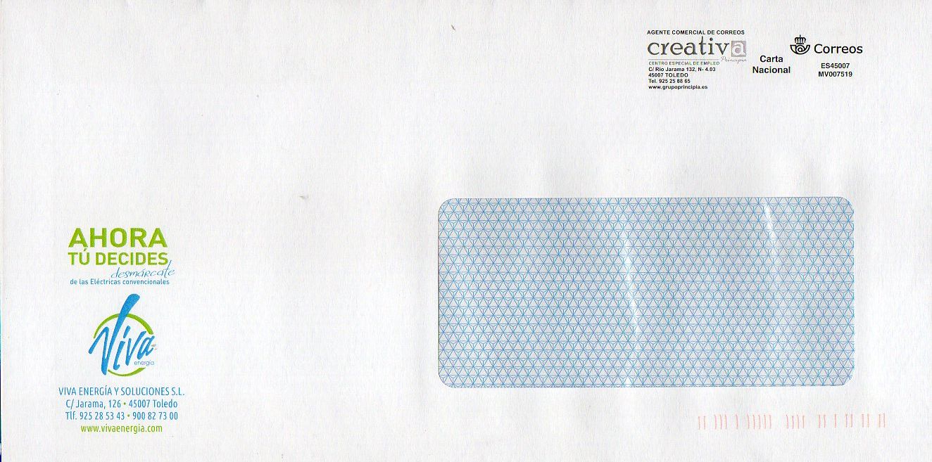 Por darle un poco de vidilla a este hilo muestro esta de creativa...que iba muy bien hasta que alguien ha enredado con los botones y ahora es una impronta enana y con el logotipo de correos anterior....un paso atras1964 escribió: 17 Nov 2019, 13:53Una de las empresas más coherentes con sus franqueos e improntas es....como no podía ser de otra manera, la MV007519 de mi Toledo:RAFAEL escribió: 09 Nov 2019, 19:50Todavía estoy dándole vueltas a como catalogarlas, aunque ya parece que se van "normalizando" dentro de las propias empresas... ¡Qué follón de imprentas!Julian escribió: 08 Nov 2019, 20:54 Esta no la veo en el cuadro del churrero, aunque juraría que ya ha salido