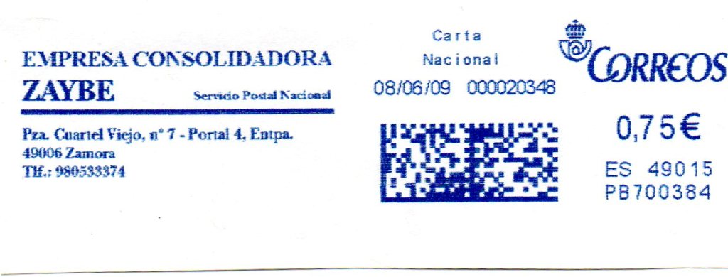 Otro ejemplo de empresa que emplea ambos sistemas: la zamorana Zaybe. En este caso, Zaybe, emplea una antigua franqueadora para la cancelación de sus propios envios.